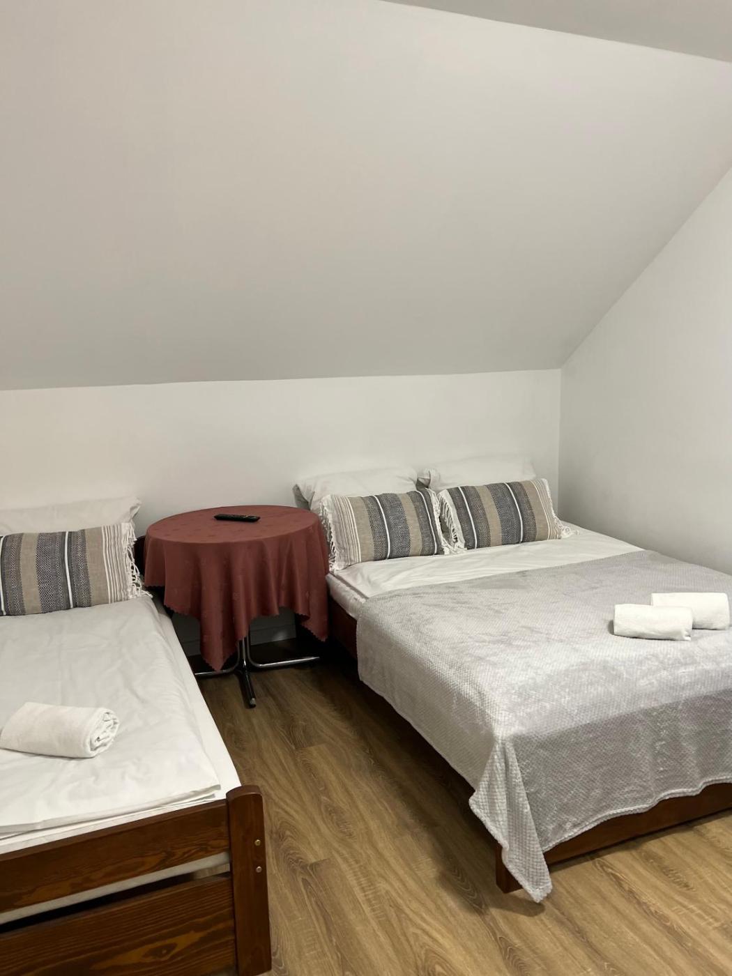 Pokój Trzyosobowy typu Basic. The triple room offers air conditioning and heating, as well as a private bathroom featuring a shower. This triple room features a flat-screen TV. The unit offers 2 beds. Pokój Trzyosobowy - 3 osobowy. ;