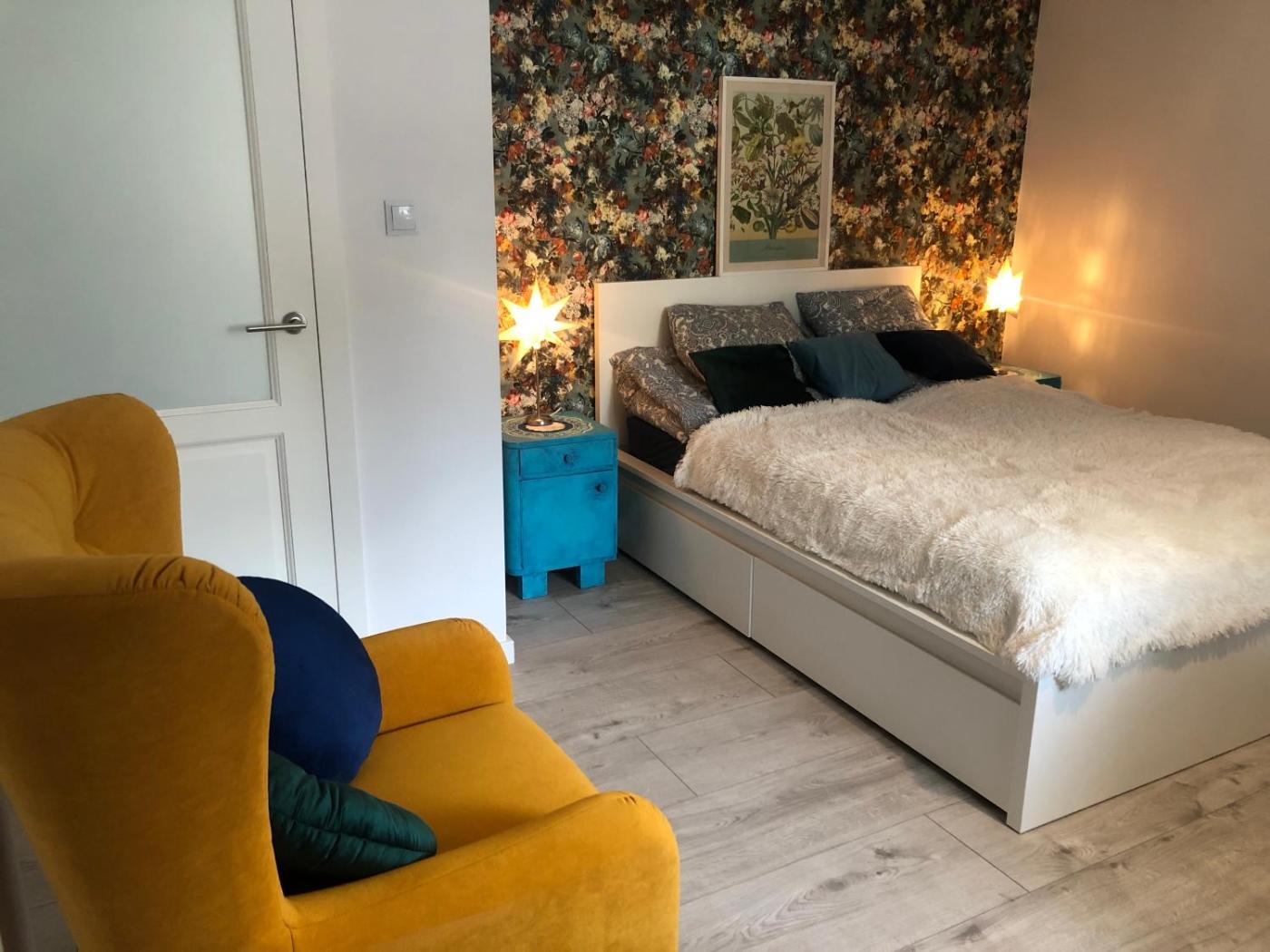 Apartament z 2 sypialniami. Guests will have a special experience as this apartment provides a fireplace. Boasting a private entrance, this apartment includes 1 living room, 2 separate bedrooms and 1 bathroom with a shower and a hairdryer. Guests can make meals in the kitchen that has a stovetop, a refrigerator, a dishwasher and kitchenware. The apartment offers a washing machine, a tea and coffee maker, a dining area as well as a terrace with garden views. The unit has 4 beds. Apartament - 4 osobowy. Powierzchnia pokoju ok.: 58 mkw.