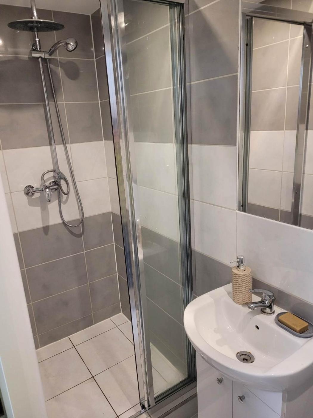 Pokój Trzyosobowy z prywatną łazienką. The triple room provides heating, as well as a private bathroom boasting a walk-in shower. The triple room features a flat-screen TV with cable channels, a seating area, a wardrobe, a tiled floor as well as a quiet street view. Pokój Trzyosobowy - 3 osobowy. Powierzchnia pokoju ok.: 14 mkw. ;