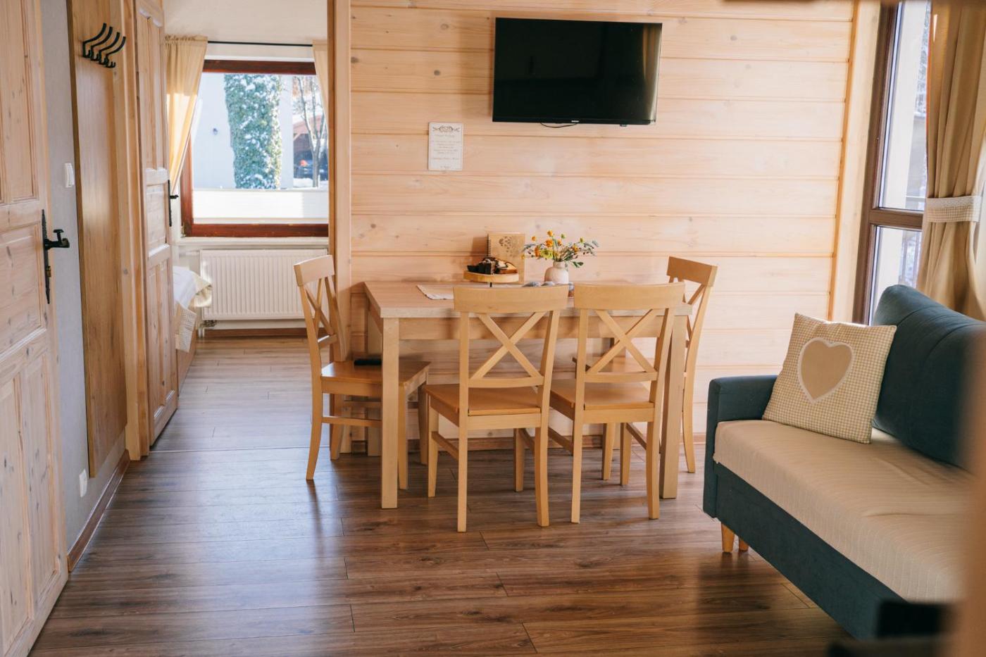 Mały pokój Dwuosobowy. The double room provides heating, as well as a private bathroom boasting a shower. Guests will find a stovetop, a refrigerator, kitchenware and a microwave in the well-equipped kitchenette. The double room also includes a barbecue. The double room features a dining area, a wardrobe, an electric kettle, a flat-screen TV, as well as garden views. The unit has 2 beds. Pokój Dwuosobowy - 2 osobowy. Powierzchnia pokoju ok.: 8 mkw.